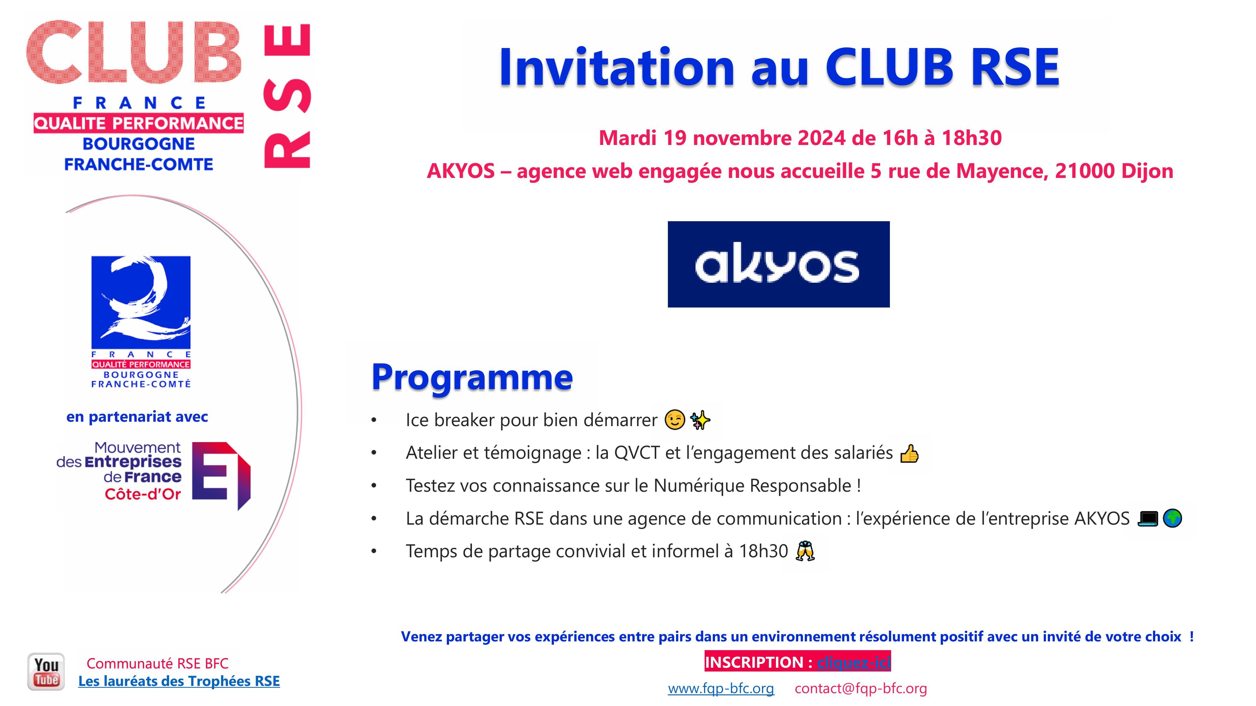 En partenariat avec le MEDEF 21, FQP BFC vous invite au prochain Club RSE